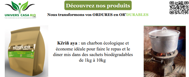 Univers Casa Bio est une entreprise verte sénégalaise fondée en 2021, spécialisée dans la valorisation des résidus agricoles et agro-industriels. Basée à Ziguinchor, elle transforme ces déchets en produits écologiques tels que le biocharbon pour la cuisson domestique et des biofertilisants pour améliorer la qualité des sols agricoles. Ces initiatives contribuent à la réduction des émissions de gaz à effet de serre et à la lutte contre la déforestation.